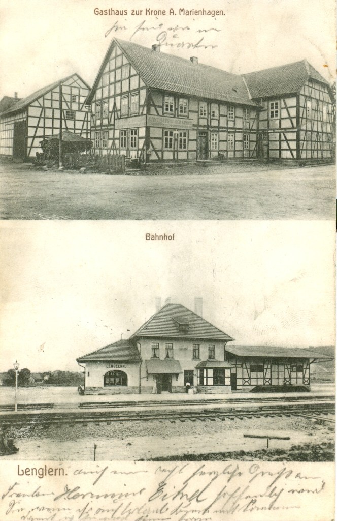 ca. 1910: Oben: Ecke Holtenser Straße/Lange Str./Bovender Str. Untere Aufnahme: Bahnhof Lenglern um 1910