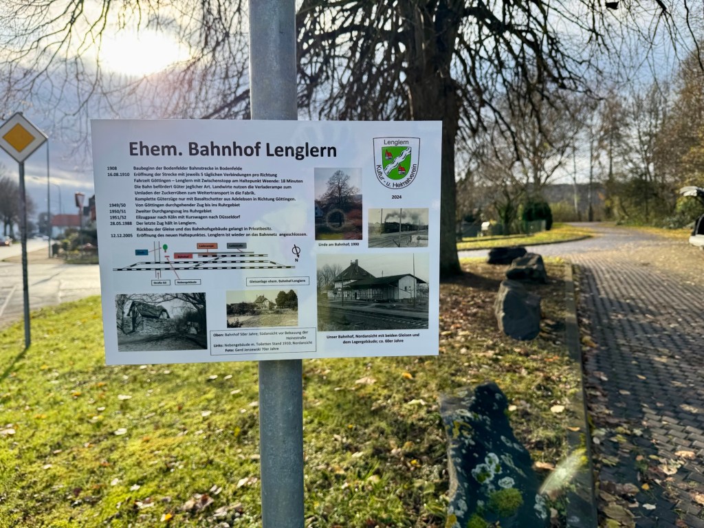Vor der Bahnhofslinde, die 1910 zur Eröffnung der Bodenfelder Bahn gepflanzt wurde und noch heute auf dem Platz vor unserem Bahnhaltepunkt steht, ist künftig die Geschichte des Lenglerner Bahnhofes nachzulesen.